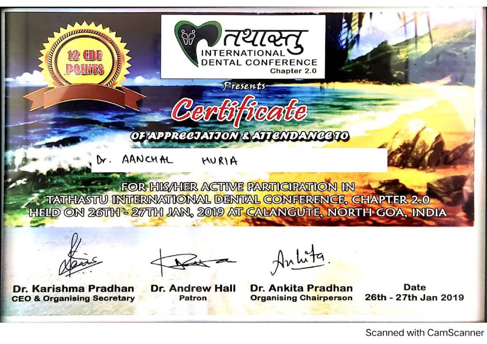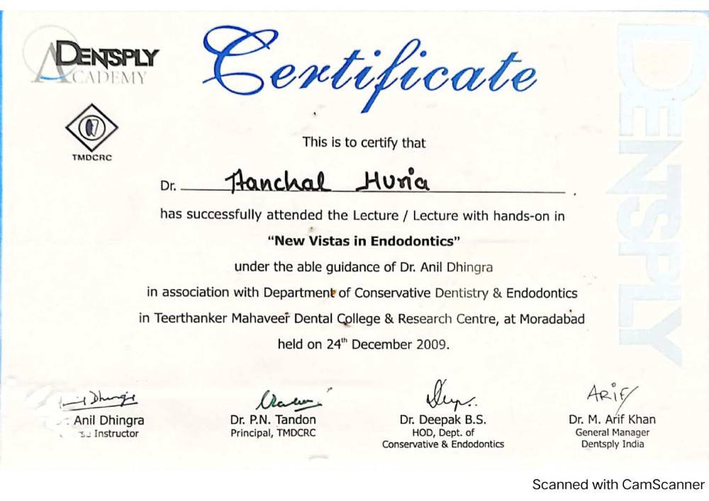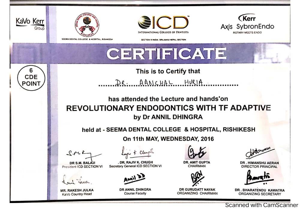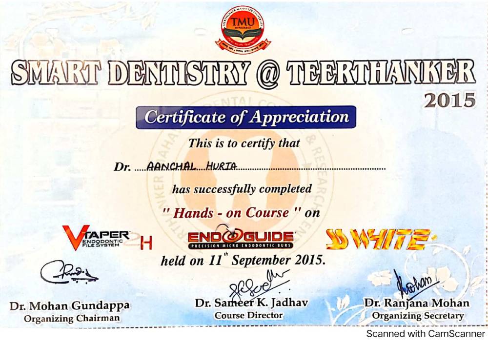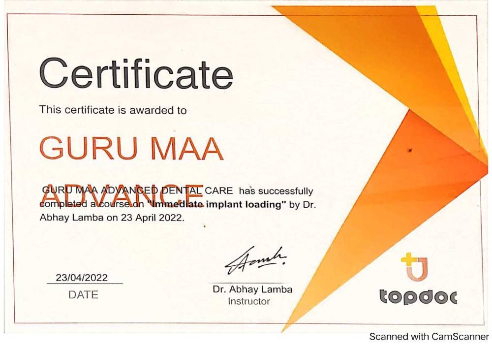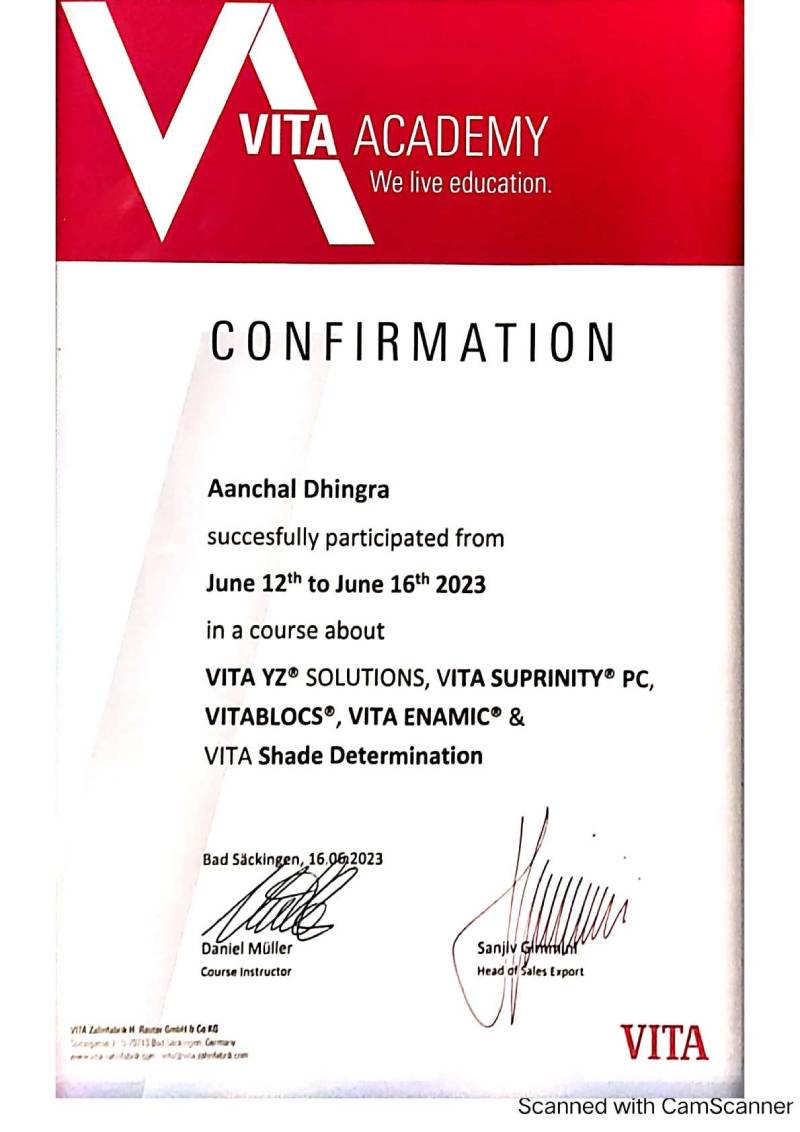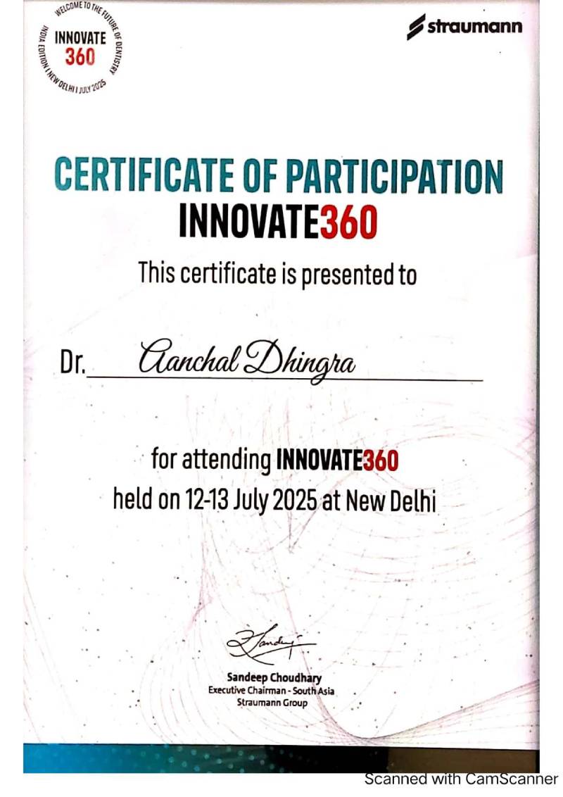 Dr. Aanchal Dhingra is MDS Endodontics and received her gold medal in 2021 by deputy chief minister of uttar Pradesh Dr. Dinesh Sharma as she topped the university. She is a Root Canal Specialist and Implantlogist. She is trained in smile designing, cosmetic dentistry, implant placement, laser in dentistry and Invisible aligner. She completed her CAD CAM training in Germany and received multitude awards in National and International conference She is awarded by CM of Uttarakhand Mr. Pushkar Singh Dhami Ji and Health Minister of UK Dr. Dhan Singh Rawat Ji in 2023 for Best Advanced Dental Hospital in Uttarakhand. She carried digital dentistry to Rudrapur as in all big cities and Guru Maa Advanced Dental Care has got the 1st entire set up of Digital Dentistry in uttarakhand.