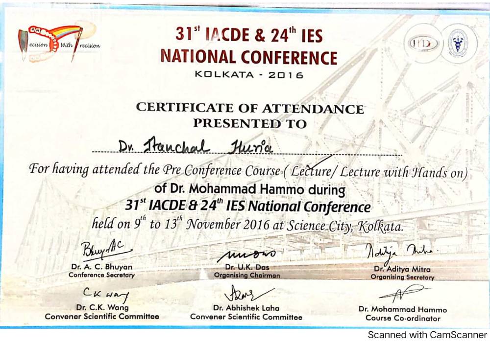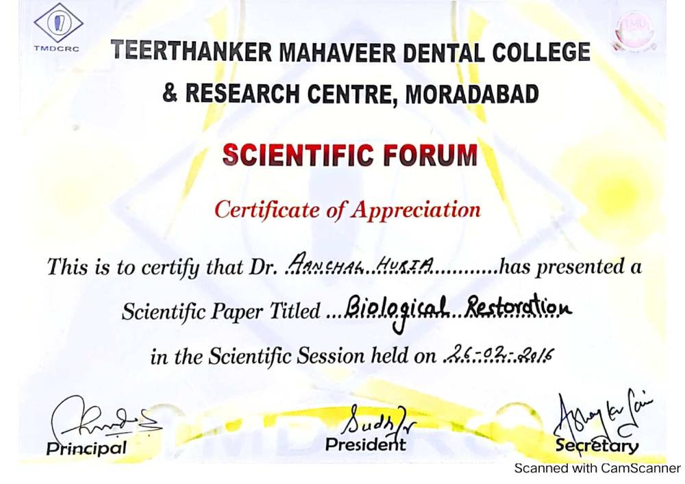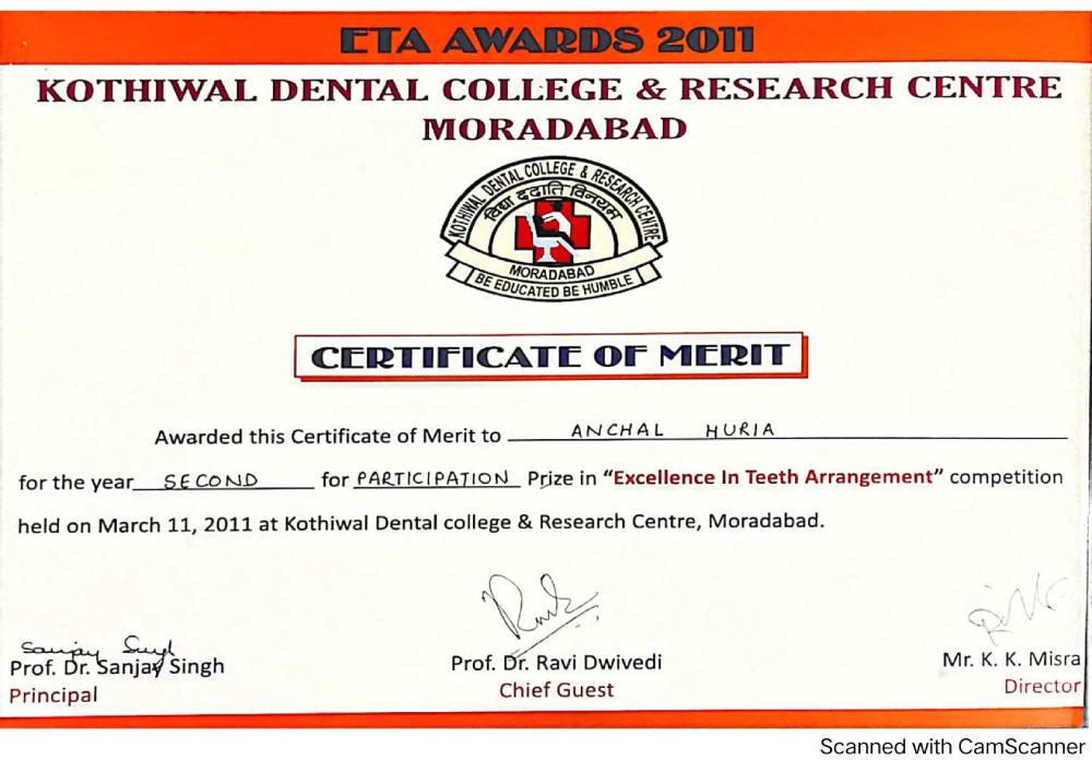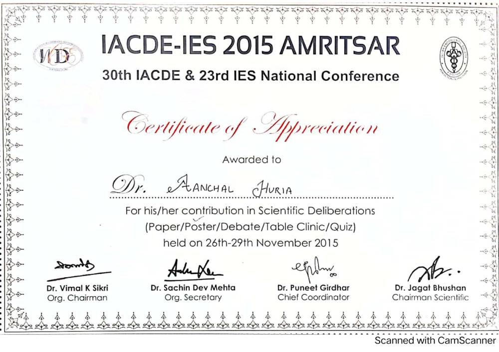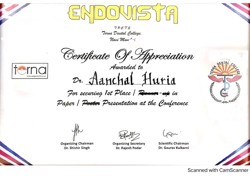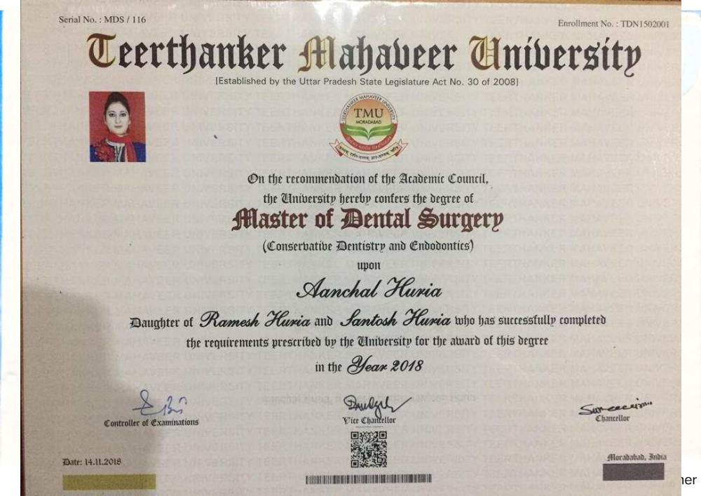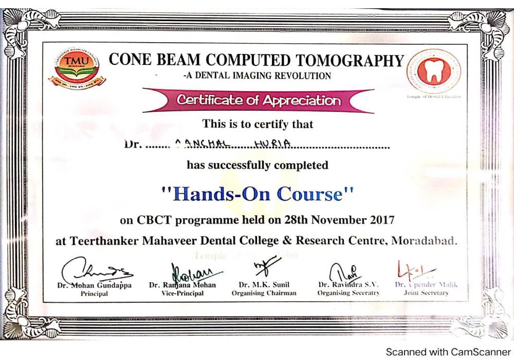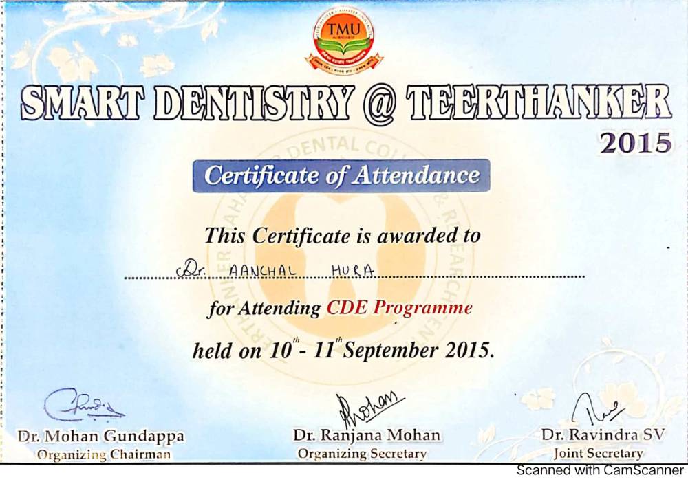 Dr. Aanchal Dhingra is MDS Endodontics and received her gold medal in 2021 by deputy chief minister of uttar Pradesh Dr. Dinesh Sharma as she topped the university. She is a Root Canal Specialist and Implantlogist. She is trained in smile designing, cosmetic dentistry, implant placement, laser in dentistry and Invisible aligner. She completed her CAD CAM training in Germany and received multitude awards in National and International conference She is awarded by CM of Uttarakhand Mr. Pushkar Singh Dhami Ji and Health Minister of UK Dr. Dhan Singh Rawat Ji in 2023 for Best Advanced Dental Hospital in Uttarakhand. She carried digital dentistry to Rudrapur as in all big cities and Guru Maa Advanced Dental Care has got the 1st entire set up of Digital Dentistry in uttarakhand.