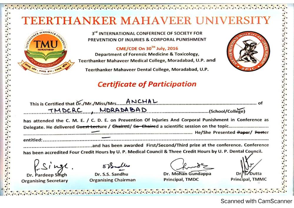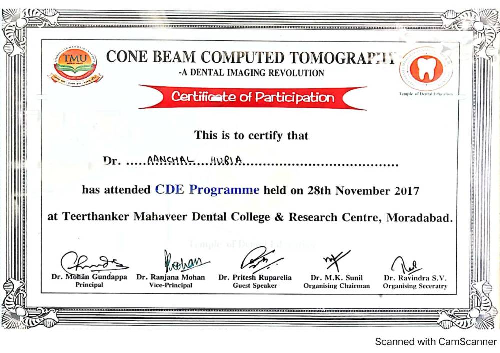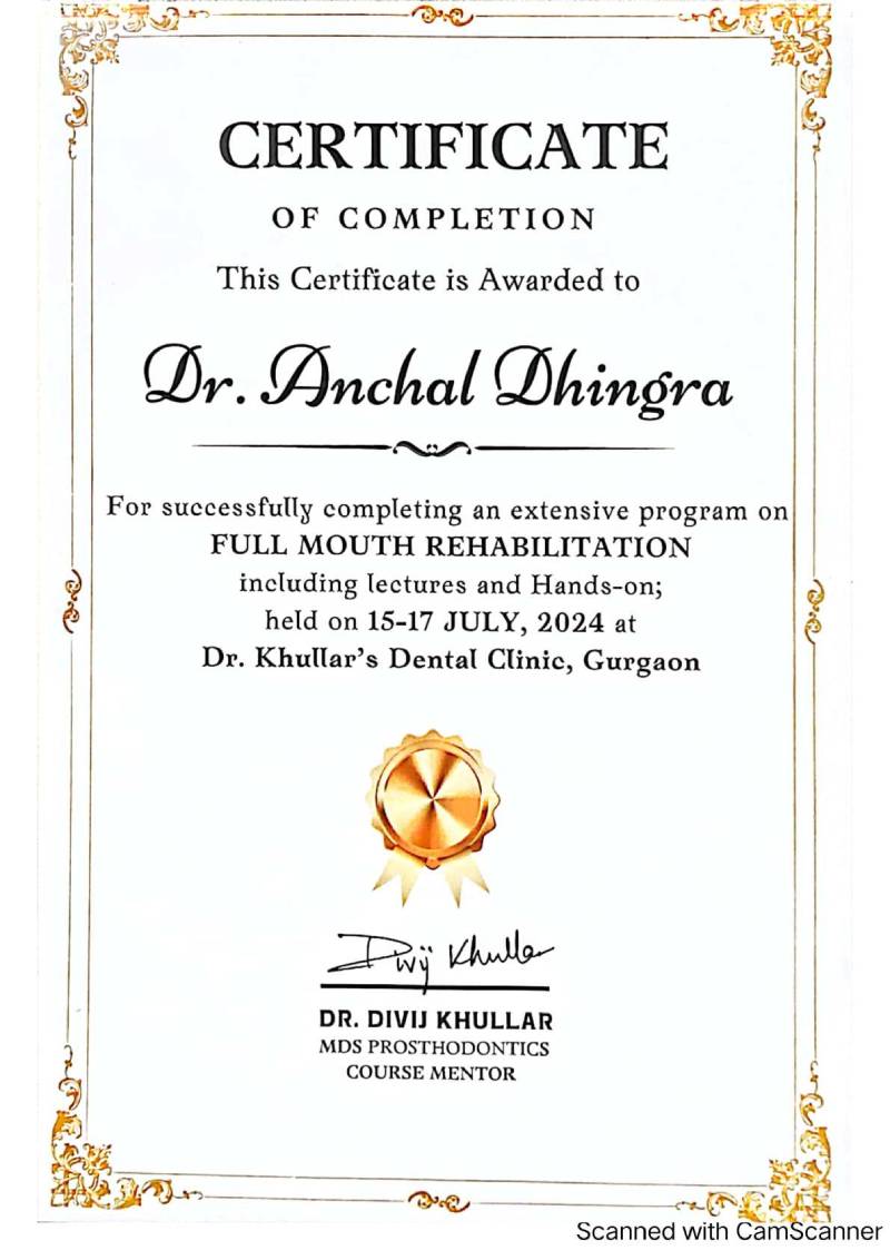 Dr. Aanchal Dhingra is MDS Endodontics and received her gold medal in 2021 by deputy chief minister of uttar Pradesh Dr. Dinesh Sharma as she topped the university. She is a Root Canal Specialist and Implantlogist. She is trained in smile designing, cosmetic dentistry, implant placement, laser in dentistry and Invisible aligner. She completed her CAD CAM training in Germany and received multitude awards in National and International conference She is awarded by CM of Uttarakhand Mr. Pushkar Singh Dhami Ji and Health Minister of UK Dr. Dhan Singh Rawat Ji in 2023 for Best Advanced Dental Hospital in Uttarakhand. She carried digital dentistry to Rudrapur as in all big cities and Guru Maa Advanced Dental Care has got the 1st entire set up of Digital Dentistry in uttarakhand.